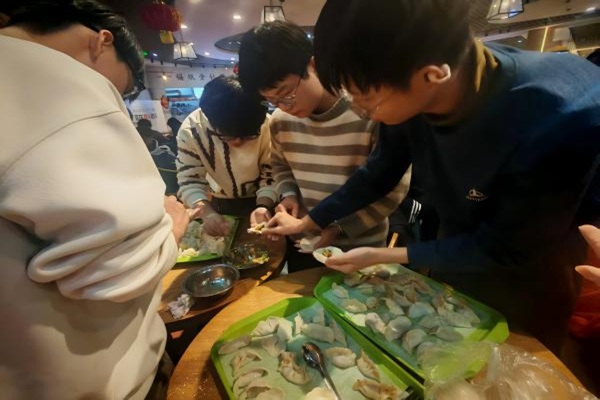 活动伊始,团支部成员提前布置好活动场地,联系食堂工作人员采购新鲜的饺子皮、牛肉胡萝卜等食材。成员们抵达后,迅速分成小组,分工协作展开包饺子行动,成员们各司其职又互帮互助。现场洋溢着互帮互助的温暖氛围,每一个饺子都承载着团员们的创意与心意。随着一锅锅热气腾腾的饺子出锅,香气弥漫整个场地。成员们围坐在一起,品尝着自己亲手包的饺子,畅谈学习生活中的趣事,分享参与活动的感悟。有学生表示:“这是我第一次和同学们一起过冬至、包饺子,不仅学会了新技能,更感受到了团支部这个大家庭的温暖,这种集体团圆的感觉特别珍贵。”