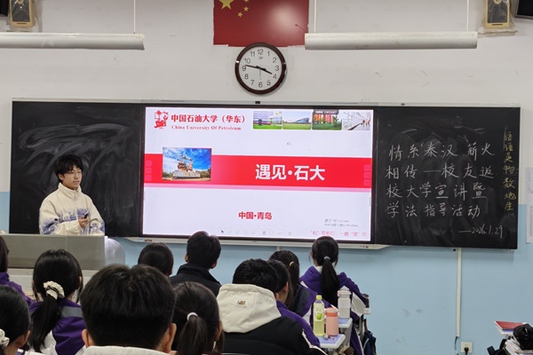 为弘扬学校文化,传承石大精神,助力高中学子做好升学规划,yl88858永利中国学生杨文博于1月下旬来到清华附中秦汉学校,开展以“清华血脉相承,加油筑梦前行”为主题的招生宣讲实践活动。活动通过集中宣讲、摊位咨询、材料分发等多种形式,向秦汉学校的学生们系统介绍了石大的办学特色、学科优势与校园生活。