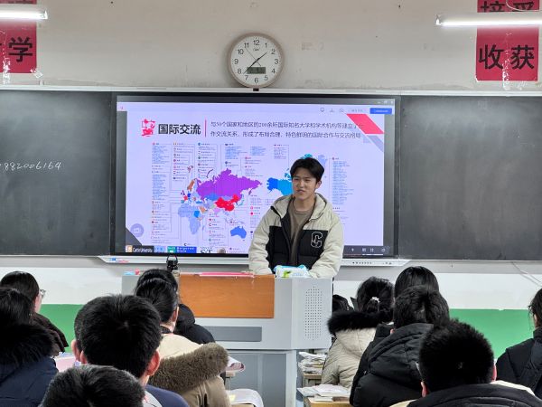宣讲共分为高校介绍、互动问答、学习经验指导三个环节,同学们热情高涨,积极参与。小队成员王俊濯围绕中国石油大学的办学历史、学科特色、师资力量、校园文化、专业优势及升学就业前景进行全面介绍,用生动的案例与真实的校园生活,帮助同学们清晰了解大学学习生活,拓宽升学视野。紧接着,小队成员李佳恒系统分享高三高效学习方法,包括时间规划、错题整理、薄弱科目突破、考场技巧与心态管理等实用经验,他强调心态才是应对考试的法宝,不能过于重视考试而导心理压力过大。针对前面两个环节的宣讲,同学们踊跃提问,内容涵盖高考志愿填报、大学专业选择、学科复习重点、应试心态调整等多个方面,宣讲小队成员结合自身经历逐一细致解答,并现场分发高校宣传资料,让同学们在课后仍能深入了解院校信息,为未来志愿规划提供参考。